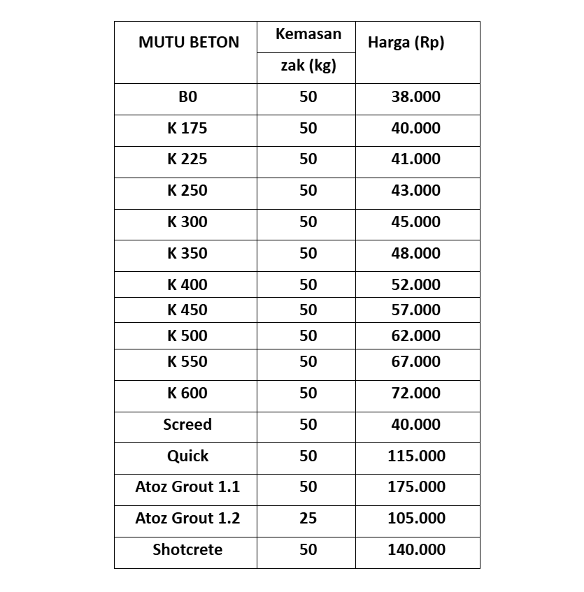 - Harga tersebut diatas truk frangko Jakarta, Bekasi, Depok dan Surabaya-Sidoarjo